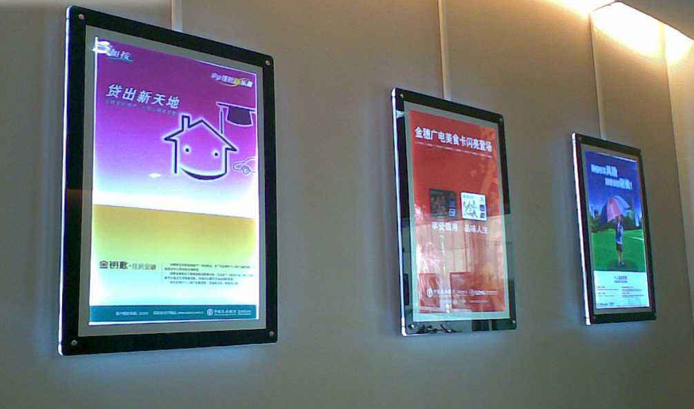 我們的生產(chǎn)軟膜前卡布箱廠主框架安裝的壹般軟膜燈箱,客戶只需光箱形框架固定到墻壁的,軟膜可以是嵌套的框。